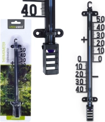 Stilīgs termometrs klasiskā izpildījumā, kas uzticami mēra apkārtējās vides temperatūru gan iekštelpās, gan ārā. Lieli cipari un izteikti iedaļojumi garantē izcilu salasāmību pat no lielāka attāluma. Pateicoties kompaktajiem izmēriem 6 × 2,5 × 25 cm, tas ir piemērots mājas sienai, pergolai, balkonam vai gaitenim.