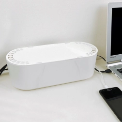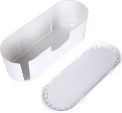 Uzturiet darba galdu un viesistabu nevainojami sakārtotu ar šo balto kabeļu organizatoru ar izmēriem 32 × 12 × 11,5 cm. Tas paslēps pagarinātāju un lādētājus, novērsīs kabeļu sapīšanos, pasargās no putekļiem, mitruma un mehāniskiem bojājumiem, un, pateicoties ventilācijas atverēm vākā, nodrošinās drošu siltuma novadīšanu. Sānu izgriezumi atvieglo pareizu kabeļu novadīšanu un paaugstina drošību mājās ar bērniem un mājdzīvniekiem.