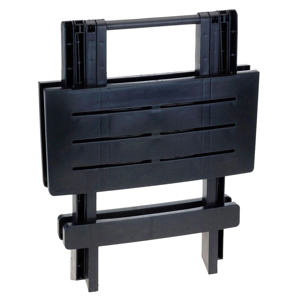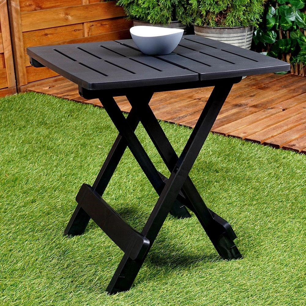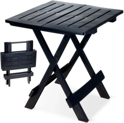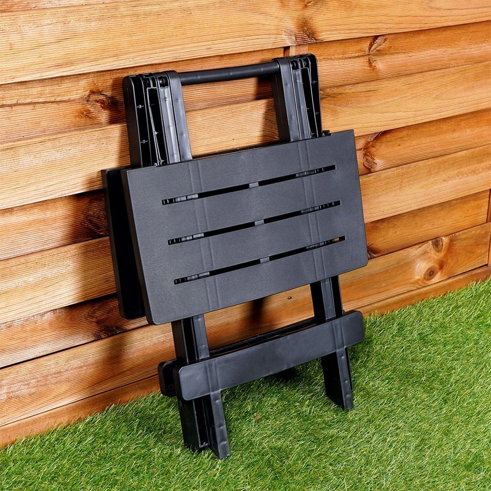 Kompakts saliekams dārza galds elegantā melnā krāsā ir ideāli piemērots dārzam, balkonam un kempingam. Virsmas izmēri 44 × 44 cm, augstums 50 cm un maksimālā noslodze līdz 12 kg. Tas ir viegls, izturīgs pret laikapstākļu iedarbību un ūdensizturīgs. Pateicoties ātrai salocīšanai un praktiskajam rokturim, to ir viegli pārvadāt un tas aizņem minimumu vietas.