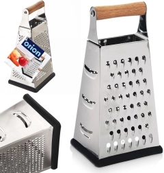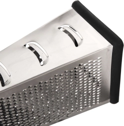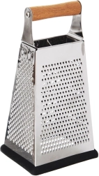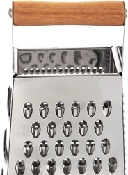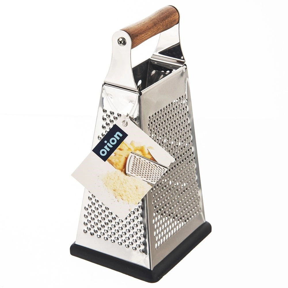Atklājiet universālu virtuves rīvi, kas atvieglo dārzeņu, augļu, sieru un garšvielu sagatavošanu. Korpuss no nerūsējošā tērauda nodrošina ilgmūžību un asus asmeņus, kamēr ērts akācijas koka rokturis un pretslīdes gumijas pamatne garantē drošu satvērienu un stabilitāti darbā.