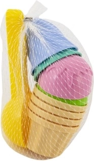 Attīstiet bērnu fantāziju ar saldējuma formiņu komplektu smiltīm. Ideāli piemērots pludmalei, rotaļu laukumam un dārzam, izgatavots no droša un izturīga plastmasas ar maigām pasteļkrāsām. Lieliski der lomu spēlēm, piemēram, kafejnīca vai veikals, un lai veidotu saldējuma bumbiņas no smiltīm.