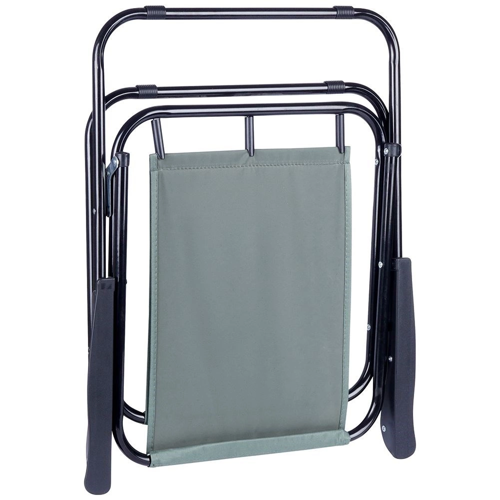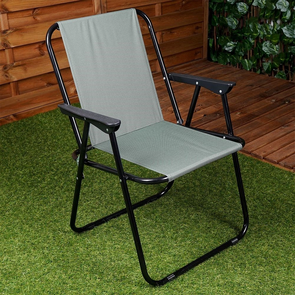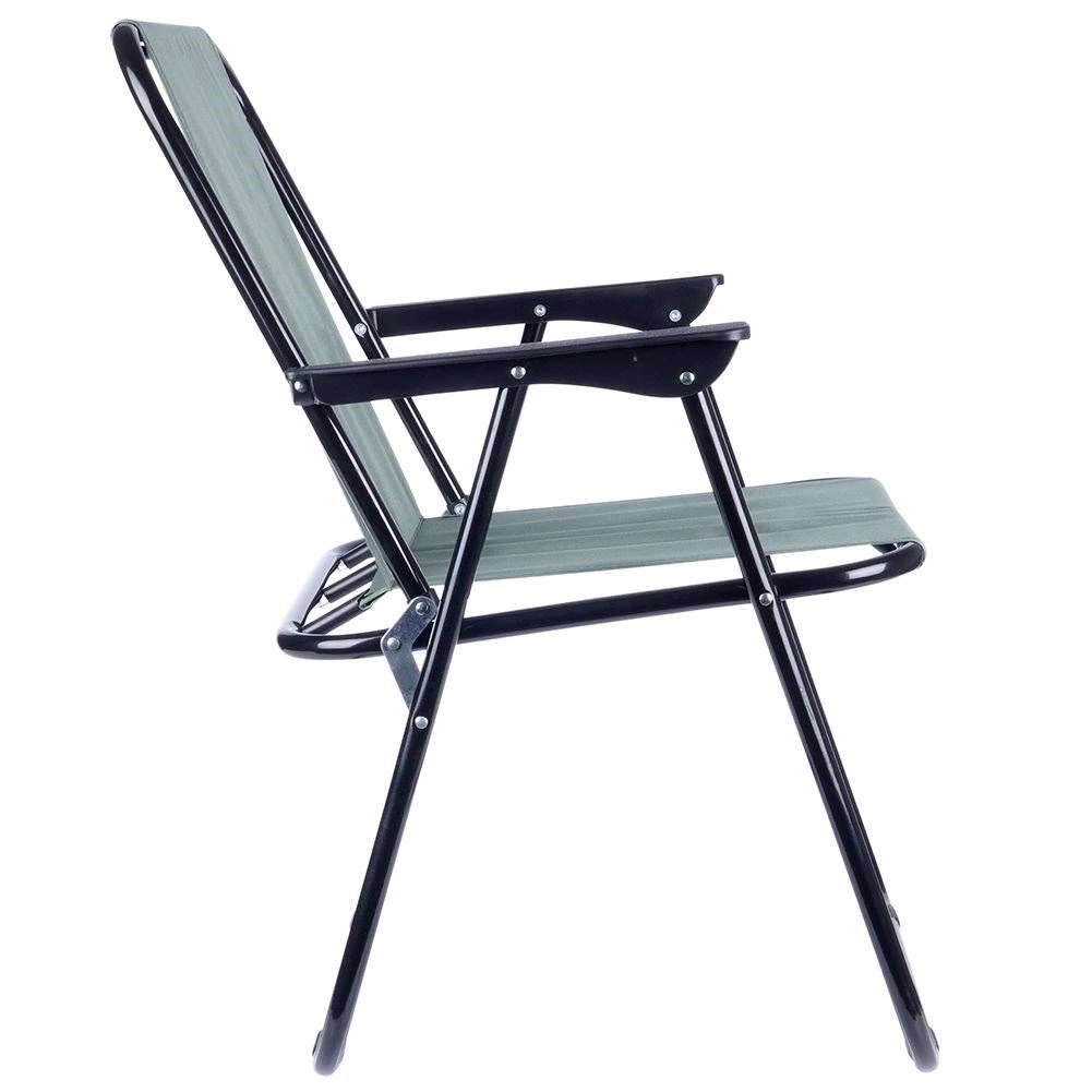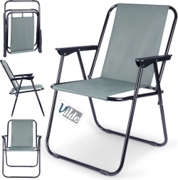 Praktisks un viegls saliekams tūristu krēsls ar izmēriem 54 × 44,5 × 72,5 cm ir ideāli piemērots pludmalei, dārzam, kempingam un makšķerēšanai. Tam ir izturīga metāla konstrukcija, noturīgs polsterēts poliestera pārvalks pelēkā krāsā un ērti roku balsti. Viegli saliekams un atlokāms, stabils un iztur slodzi līdz 110 kg.