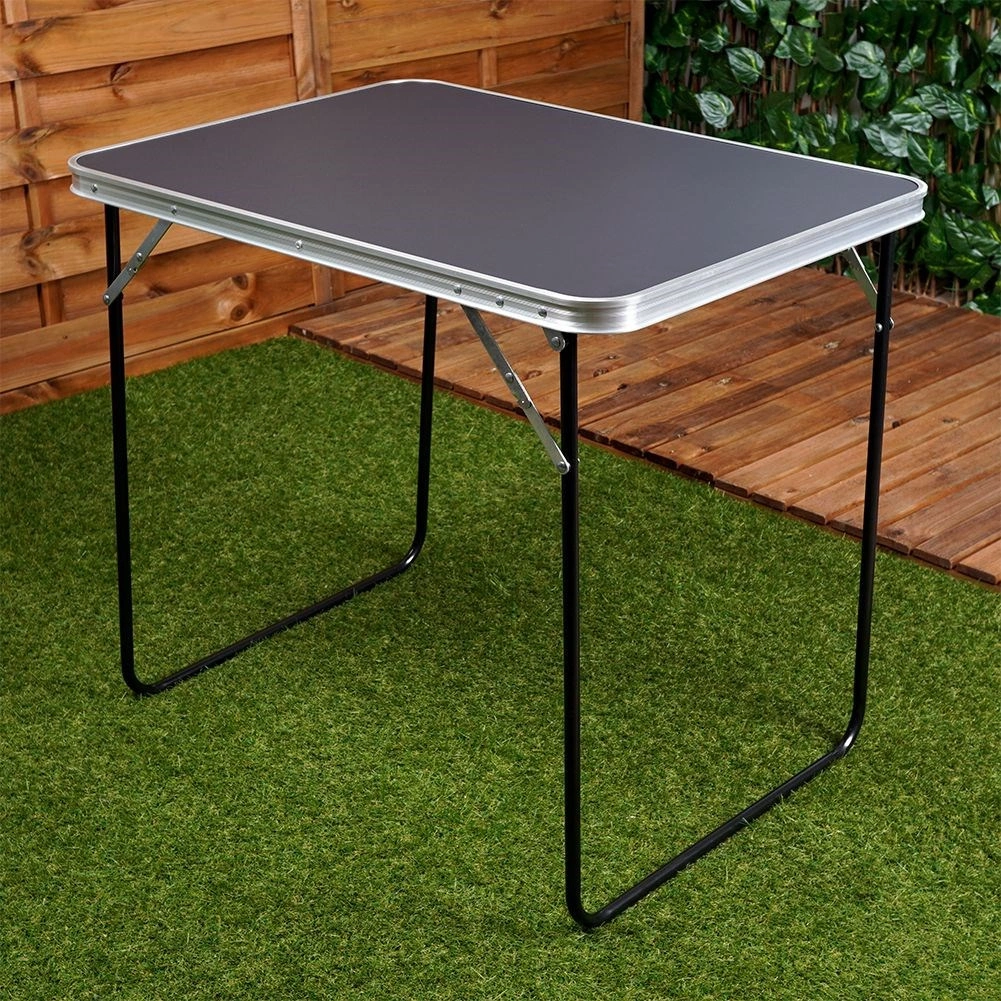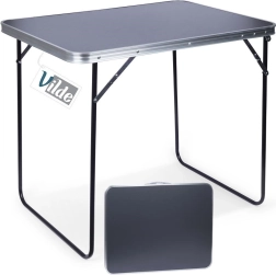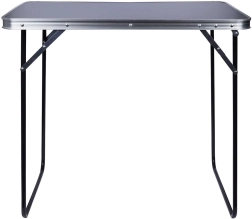 Praktisks saliekams galds kempingam, dārzam un balkonam ar izmēriem 80 × 60 × 70 cm un maksimālo noslodzi līdz 30 kg. Izturīga MDF virsma grafīta krāsā ar speciālu aizsargkārtu, stingrs metāla rāmis un alumīnija mala nodrošina stabilitāti. Pēc salocīšanas ir kompakts, ar integrētu rokturi un ūdensizturīgs – ideāli piemērots kempingam, piknikiem un lietošanai mājās.