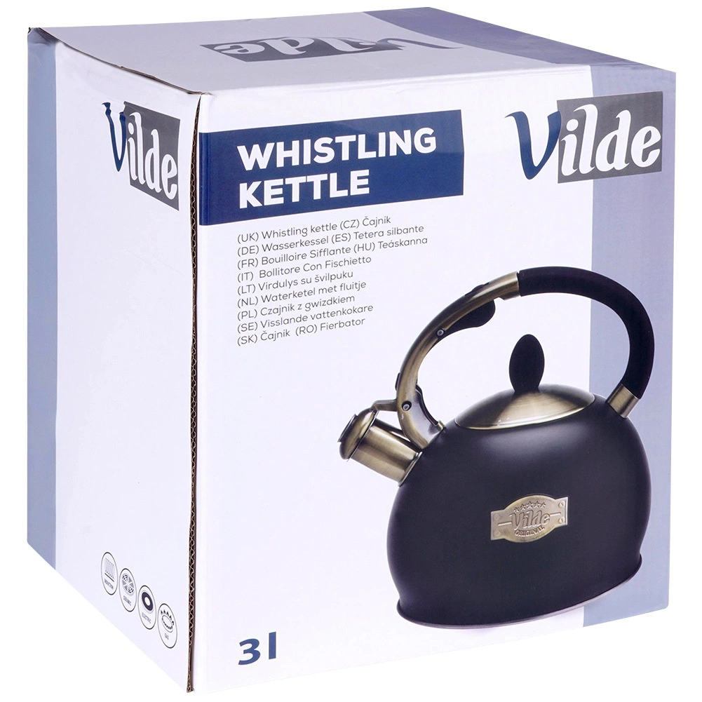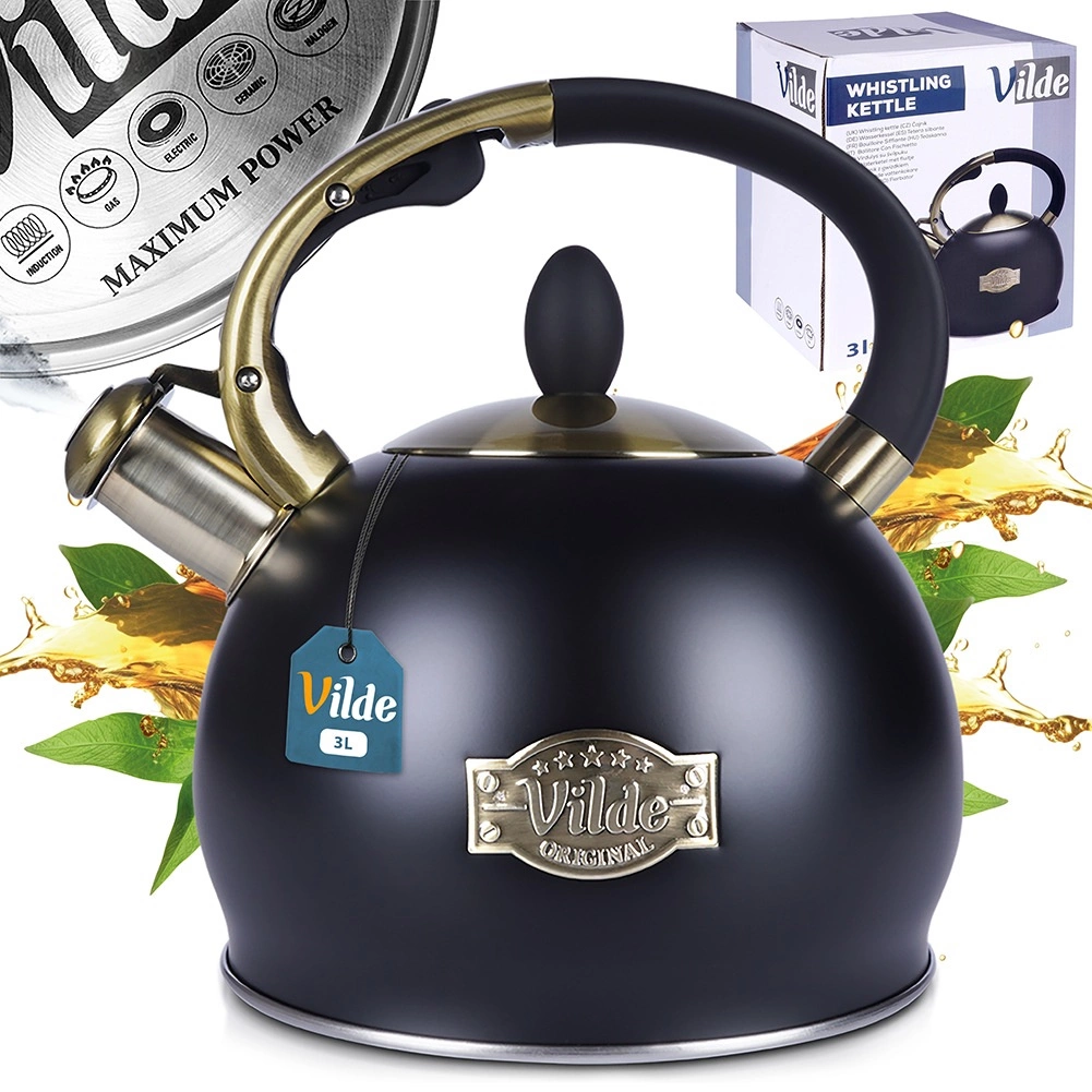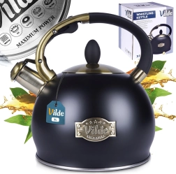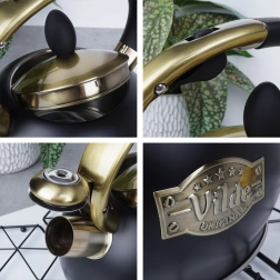 Matēta melnā krāsa kombinācijā ar misiņa detaļām un Vilde emblēmu piešķir tējkannai mūžīgu izskatu, kas lieliski iederas gan modernā, gan klasiskā virtuvē.