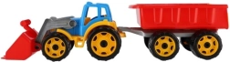 Krāsains plastmasas traktors ar iekrāvēju un piekabi ir ideāla rotaļlieta mazajiem zemniekiem. Izgatavots no kvalitatīvas un izturīgas plastmasas, tas nodrošina ilgstošas izklaides stundas ne tikai smilšu kastē.