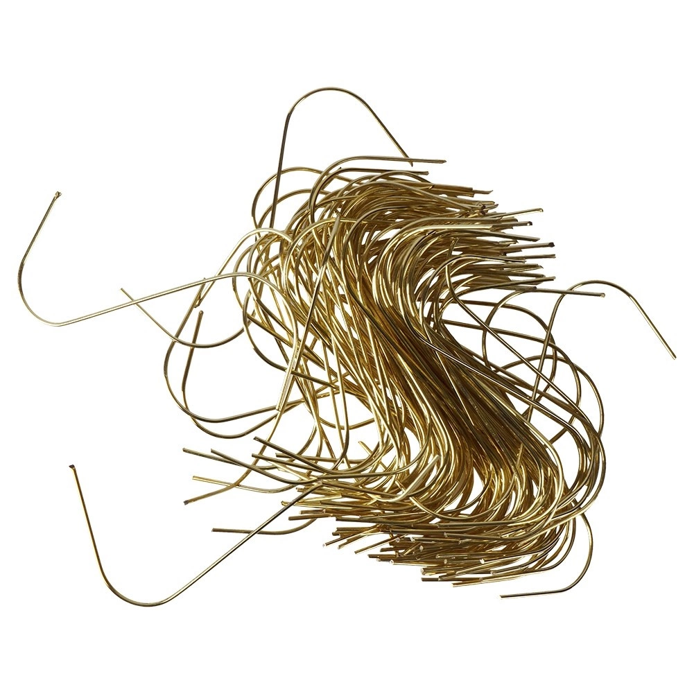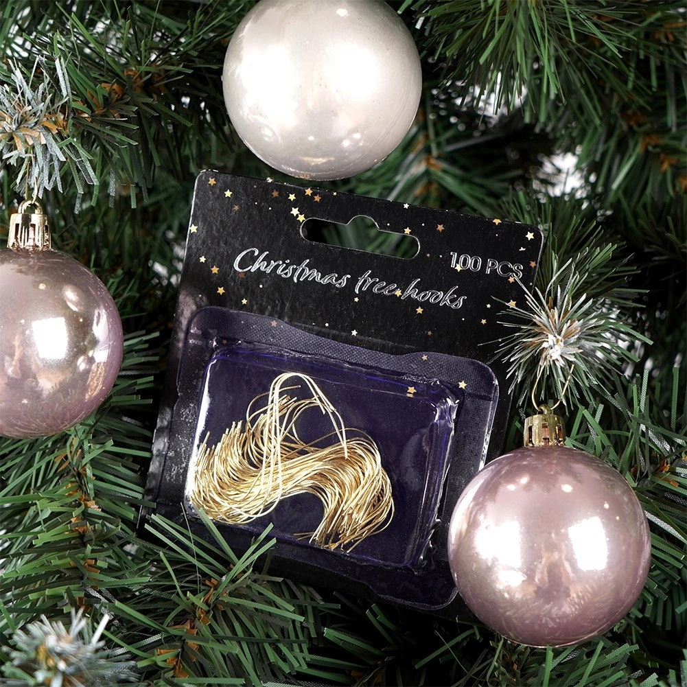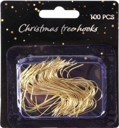 Praktiska komplekts ar 100 metāla āķīšiem zelta krāsā ērtai un drošai Ziemassvētku rotājumu iekāršanai eglītē. Pateicoties 4 cm garumam, tie lieliski der dažādu veidu un izmēru dekorācijām, ir izturīgi, atkārtoti lietojami un ar ergonomisku formu ātrai piestiprināšanai bez piepūles – arī bērniem.