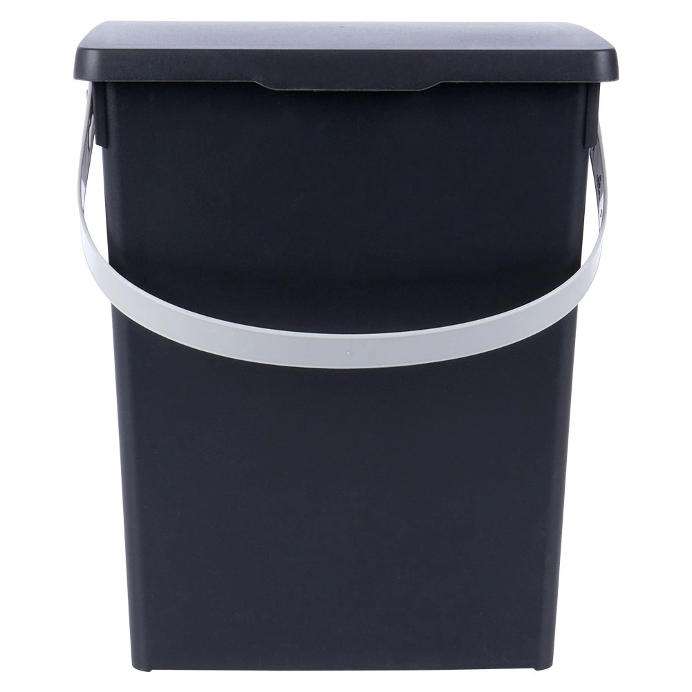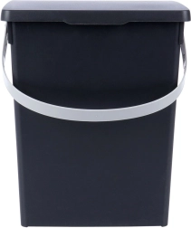 Stilīgs melns konteiners ar pelēku rokturi ir ideāls sakārtotai sadzīves ķīmijas, veļas kapsulu un pulveru, trauku mazgājamās mašīnas tablešu, tīrīšanas līdzekļu, piederumu vai instrumentu glabāšanai. Pateicoties kompaktajiem izmēriem 19 × 18 × 23 cm, to viegli novietot skapī, uz plaukta vai uz darba virsmas.