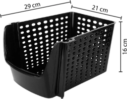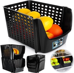 Piemērots augļiem, dārzeņiem, kā arī saimniecības vai biroja piederumiem. Vairākus grozus var stabili sakraut, ietaupot vietu.