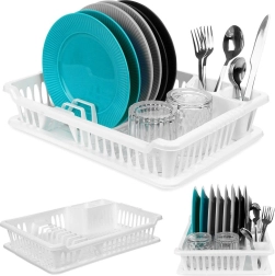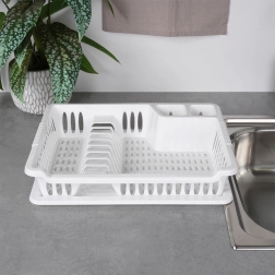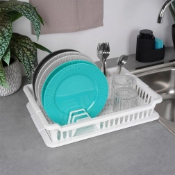 Praktisks balts trauku žāvētājs ar izmēriem 40 × 29 × 8,5 cm atvieglo šķīvju, glāžu un piederumu žāvēšanu un vienlaikus aizsargā virtuves darba virsmu. Tam ir izņemams noteces paliktnis, vietas 8 šķīvjiem, nodaļas piederumiem un vietas krūzēm. Tas ir viegls tīrīšanā, bez BPA un pateicoties klasiskajam dizainam lieliski iederas gan modernā, gan tradicionālā virtuvē.