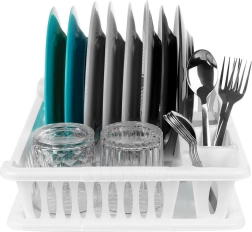 Uzturiet virtuvi kārtībā un bez liekiem ūdens pilieniem. Šis kompaktais trauku žāvētājs piedāvā pārdomātu izvietojumu šķīvjiem, krūzēm un piederumiem, lai viss ātri un higiēniski nožūtu. Izņemamā noteces paplāte atvieglo tīrīšanu un uztur darba virsmu sausu.
