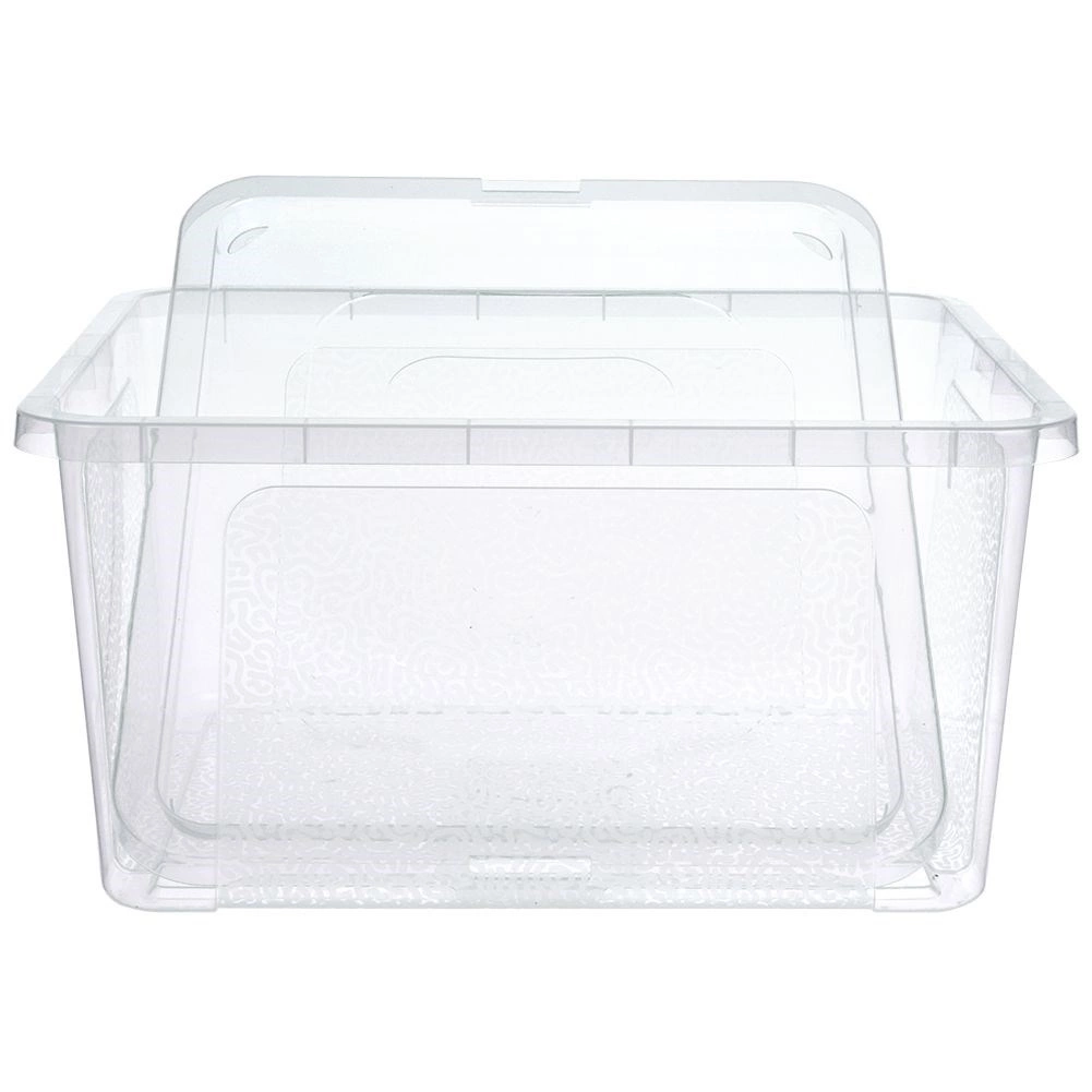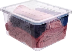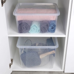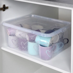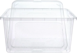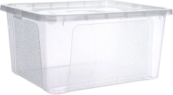 Universāla uzglabāšanas kaste ar vāku palīdz pārskatāmi sakārtot tekstilizstrādājumus, rotaļlietas, grāmatas, instrumentus un sezonālo aprīkojumu. Caurspīdīgais izpildījums ļauj ātri pārbaudīt saturu neatverot, vāks ar vieglu “klik” droši noslēdz un pasargā visu iekšpusē. Noapaļotie stūri uzlabo drošību lietošanas laikā, bet stapējamas malas taupa vietu plauktos un drēbju skapjos.
