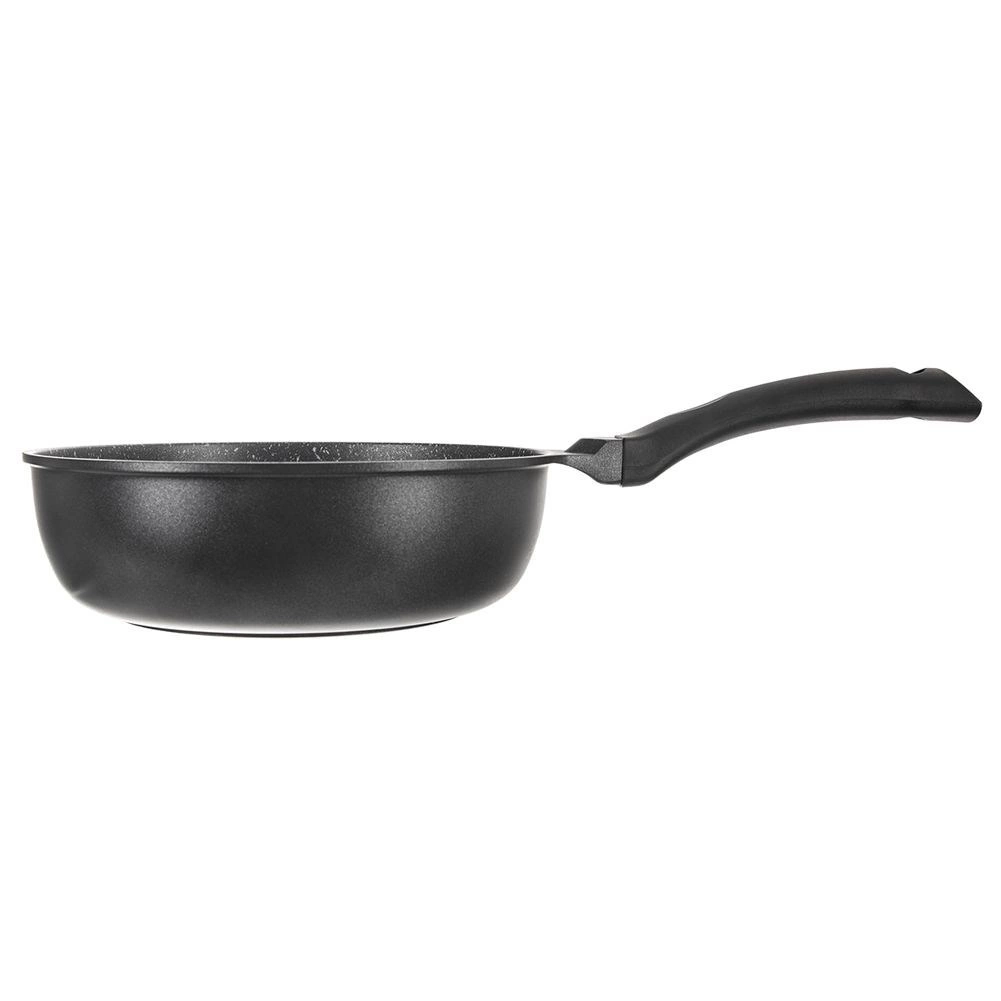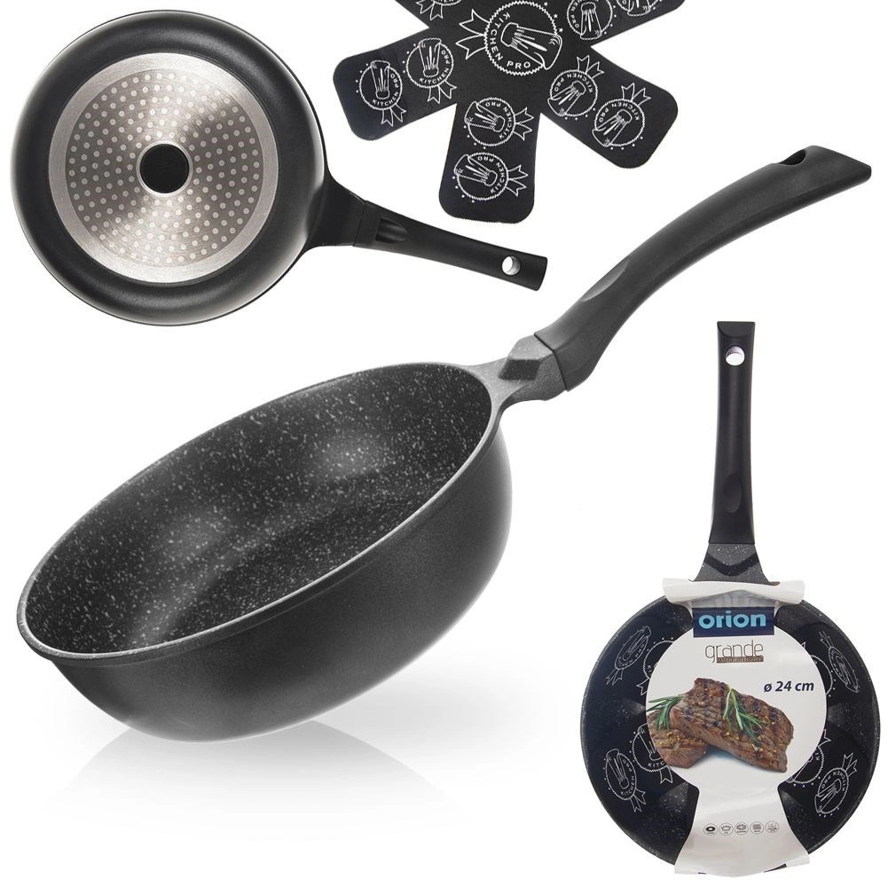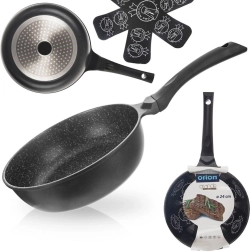 Dziļa nelīpoša panna ar 24 cm diametru no izturīga lieta alumīnija nodrošina ātru un vienmērīgu siltuma sadali, nelīpošu granīta pārklājumu bez PFOA un universālu izmantošanu uz visiem plīts veidiem, tostarp indukcijas. Pateicoties augstajai malai, tā ir ideāli piemērota gan cepšanai, gan sautēšanai, taupa enerģiju un ļauj gatavot ar minimālu tauku daudzumu. Komplektā ir aizsargfilca paliktnis drošai sakraušanai.