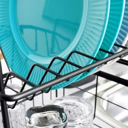 Maksimizējiet vietu pie izlietnes ar kompaktu un stabilu žāvētāju, kurā ietilpst viss nepieciešamais – no šķīvjiem un glāzēm līdz pat galda piederumiem. Divstāvu izkārtojums nodrošina ātrāku gaisa plūsmu un tādējādi ātrāku žūšanu, kamēr izņemamais noteces paliktnis uztur darba virsmu bez slapjām pēdām.