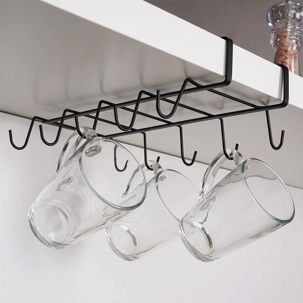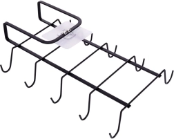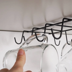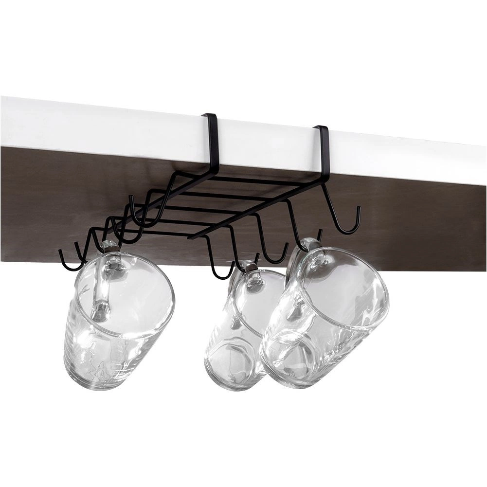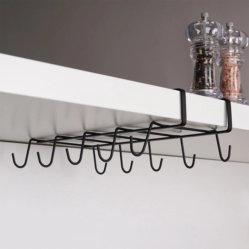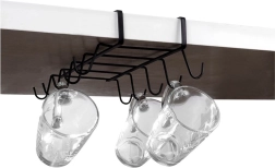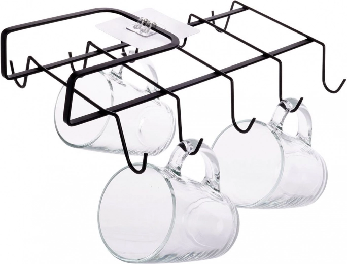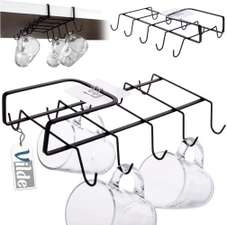 Praktisks piekārams turētājs zem plauktiem un skapīšiem palīdz sakārtot virtuvi un maksimāli izmantot vertikālo telpu. Pateicoties desmit āķiem, ērti novietosiet krūzes, tasītes un virtuves piederumus. Matēti melnais pārklājums piešķir interjeram lofta raksturu.