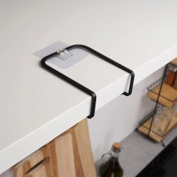 Montāža aizņem mirkli – turētāju vienkārši uzbīdiet uz plaukta, bez urbšanas un instrumentiem. Lai nodrošinātu lielāku stabilitāti, komplektā ir caurspīdīgs pašlīmējošs paliktnis. Kvalitatīvais metāla izpildījums nodrošina ilgu kalpošanas laiku un uzticamu nestspēju.