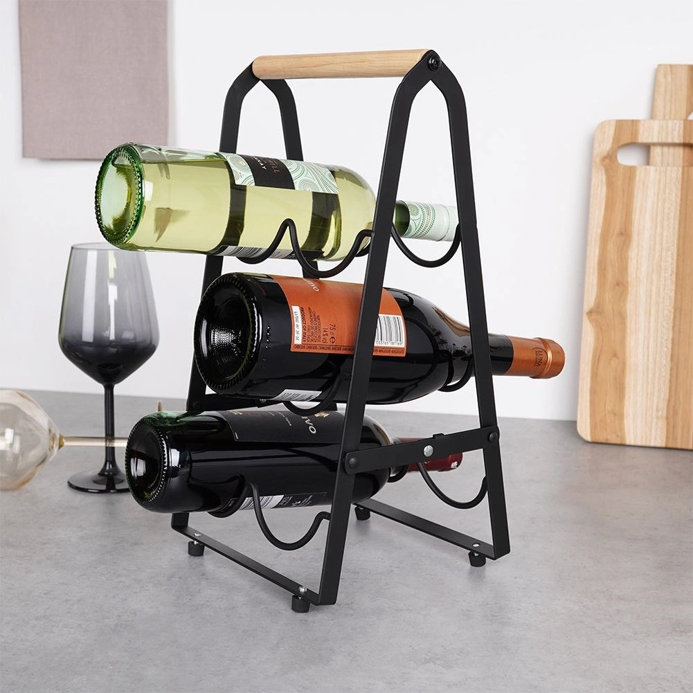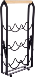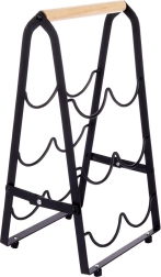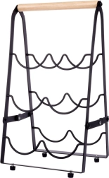 Šis dizaina vīna statīvs lofta stilā apvieno matēti melnu metālu ar dabīgu koku, lieliski iekļaujoties mūsdienīgos interjeros. Novietojot pudeles guļus, tiek nodrošināta pareiza uzglabāšana – korķi paliek mitri un vīns saglabā savu kvalitāti. Pateicoties ērtajam rokturim, statīvu var viegli pārnest un novietot uz virtuves virsmas, komodes vai bāra letes.