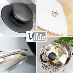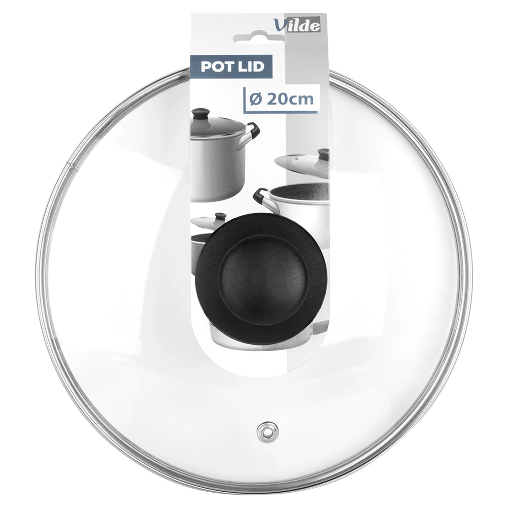 Šis VILDE stikla vāks ar 20 cm diametru ir uzticams palīgs ikdienas gatavošanā. Caurspīdīgais, karstumizturīgais stikls ļauj kontrolēt ēdienu, nepacelot vāku, tā taupot siltumu un laiku. Nerūsējošā tērauda apmale palielina izturību un nodrošina stabilu, ciešu piegulšanu traukam.