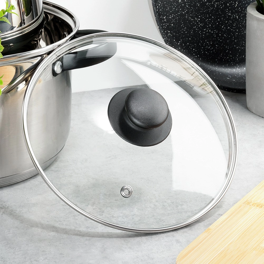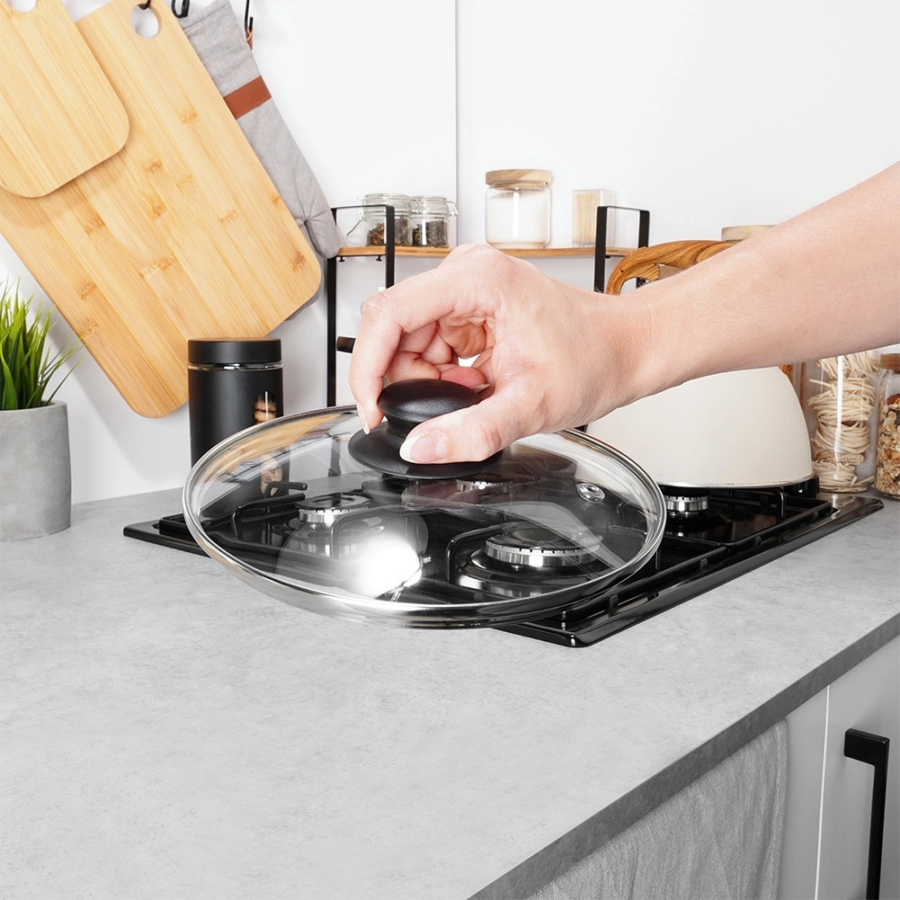 Universāls stikla vāks ar 20 cm diametru, nerūsējoša tērauda malu un ērtu rokturi nodrošina ātrāku gatavošanu, mazāk nekārtības un labāku ēdiena gatavošanas kontroli. Pateicoties karstumizturīgam stiklam, tvaika atverei un augstajai malai tas lieliski pieguļ, samazina šļakstīšanos un ļauj uzraudzīt gatavošanu, nepacelot vāku. Piemērots katliem, pannām un sautējamajiem katliņiem ar tādu pašu diametru.