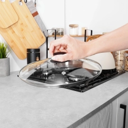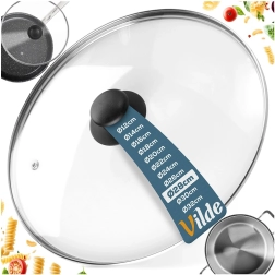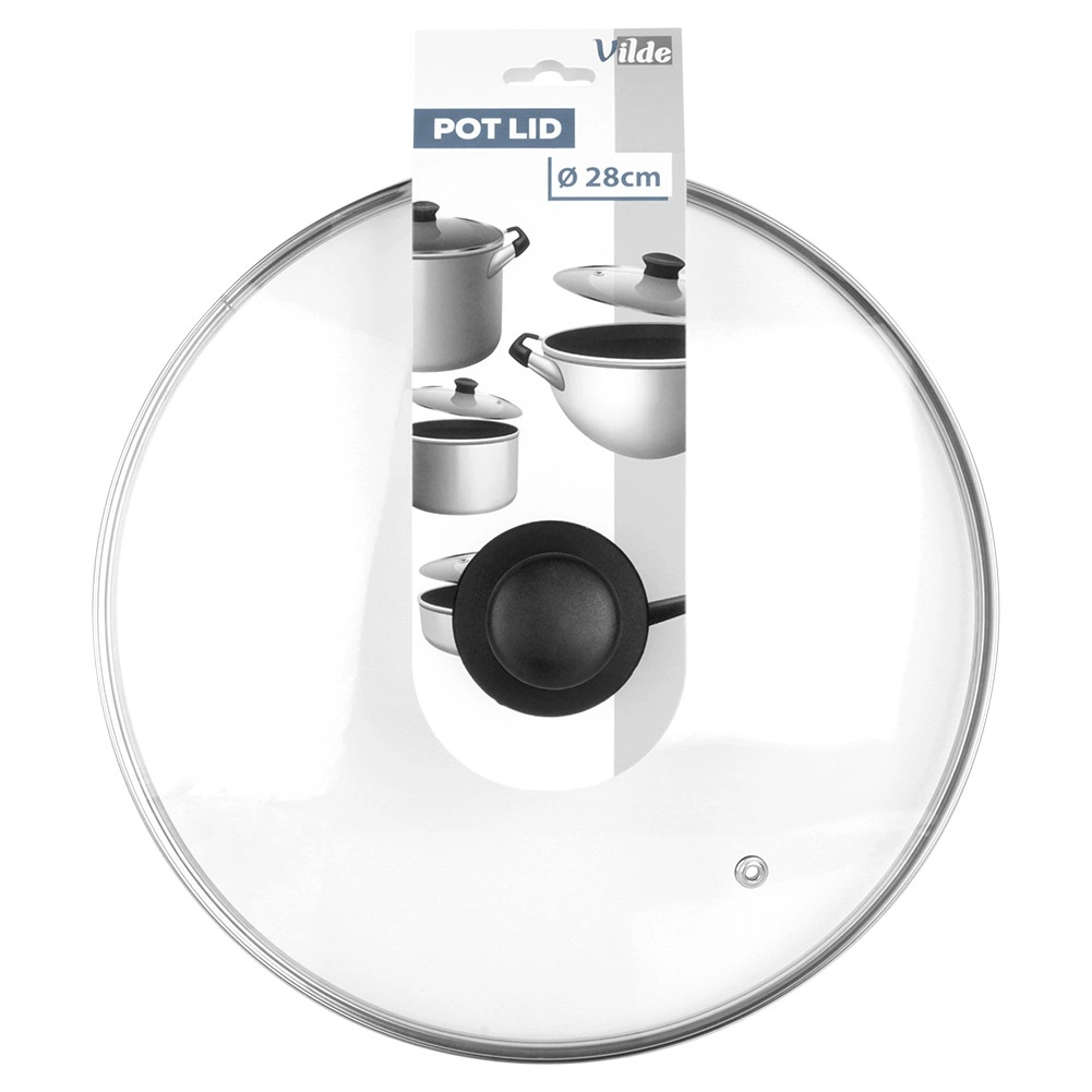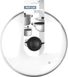 Praktisks vāks no karstumizturīga, dzidra stikla ir ideāli piemērots katliem, pannām un sautējamajiem traukiem ar diametru 28 cm. Izturīgā nerūsējošā tērauda mala pagarina kalpošanas laiku, savukārt ergonomiskais rokturis no izturīga materiāla atvieglo lietošanu. Pateicoties caurspīdīgumam, jūs pilnībā kontrolējat gatavošanu bez liekiem siltuma zudumiem.