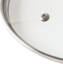 Universāls stikla vāks ar 30 cm diametru, nerūsējoša tērauda apmali un ērti satveramu rokturi ir ideāli piemērots katliem, pannām un sautējamajiem traukiem ar tādu pašu izmēru. Pateicoties karstumizturīgajam caurspīdīgajam stiklam, varat viegli pārbaudīt gatavošanos, nepaceļot vāku. Tvaika izplūdes atvere, augsta mala ciešai piegulēšanai un izturība līdz +200 °C nodrošina drošu un ērtu lietošanu. Piemērots mazgāšanai trauku mazgājamajā mašīnā.