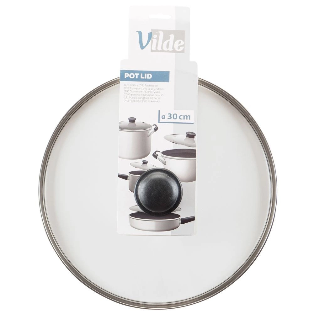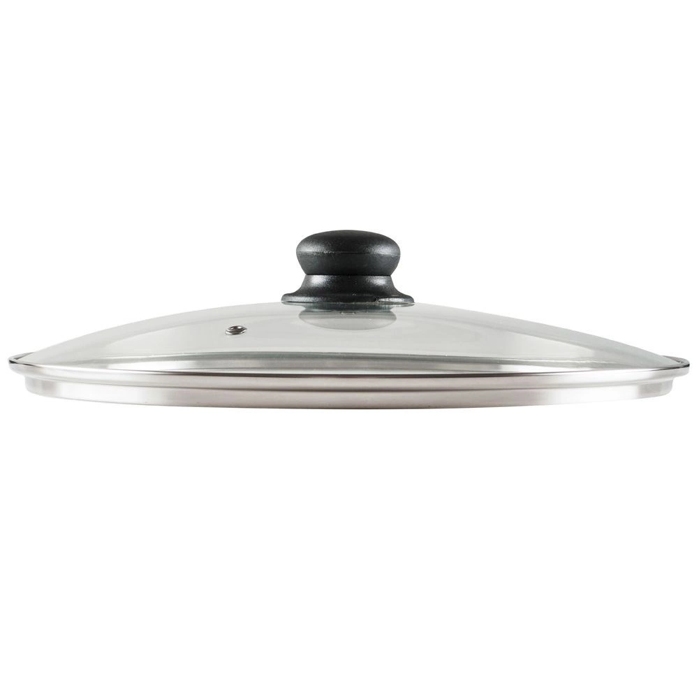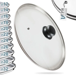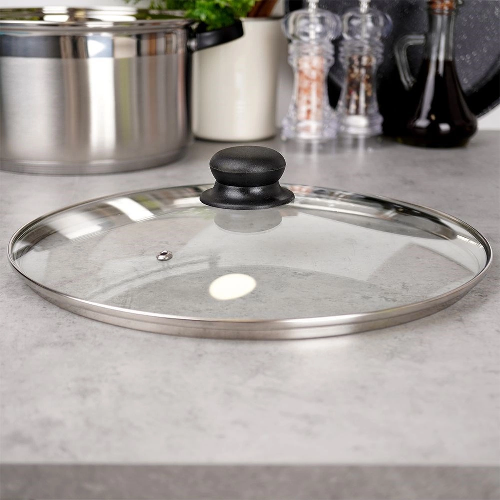 Uzticamais 30 cm stikla vāks ir praktisks palīgs jebkurā virtuvē. Tas paātrina vārīšanu un cepšanu, samazina ūdens un tauku šļakstēšanos un palīdz ilgāk saglabāt pagatavoto ēdienu temperatūru. Caurspīdīgais stikls ļauj kontrolēt procesu bez pacelšanas.