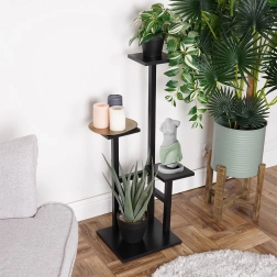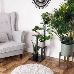 Daudzlīmeņu izvietojums ar četrām dažāda augstuma plauktu virsmām veido pievilcīgas zaļuma un dekoru kompozīcijas, minimāli noslogojot grīdas platību. Statīvs ir ideāls gan dzīvajiem, gan mākslīgajiem augiem, un ar savu modernu lofta dizainu piešķir interjeram personīgu raksturu.