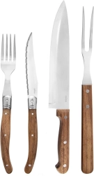 - Pilns aprīkojums 6 personām – dakšas un steika naži + pavāra nazis, gaļas dakša un dēlītis.