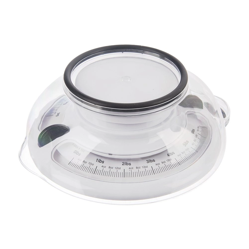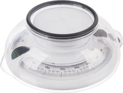 Liels apaļš ciparnīcas rādītājs ar skaidrām atzīmēm gramos un kilogramos, kā arī mārciņās un uncēs. Mehāniska darbība – nav nepieciešamas baterijas.