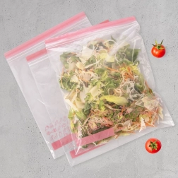 Praktisks komplekts ar 25 caurspīdīgiem rāvējslēdzēja maisiņiem, izmērs 34 × 27 cm, drošai un higiēniskai pārtikas un sīklietu uzglabāšanai. Pateicoties dubultajam rāvējslēdzējam tie ir 100% hermētiski, piemēroti ledusskapim un saldētavai un atkārtoti lietojami. Uz maisiņiem ir vieta marķējumam ērtai organizācijai.