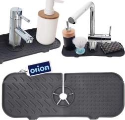Praktisks silikona paliktnis izlietnei ar izmēriem 36 × 14 cm uztur sausu jaucējkrāna apkārtni un darba virsmu. Pateicoties centrālajam izgriezumam, tas lieliski pielāgojas lielākajai daļai jaucējkrānu, kalpo kā notecināšanas vieta sūkļiem un trauku kopšanas līdzekļiem un aizsargā virsmu no mitruma un kaļķakmens. Izgatavots no izturīga silikona materiāla, viegli tīrāms un piemērots trauku mazgājamajai mašīnai. Neslīdoša virsma, ātra ūdens novadīšana un ilgs kalpošanas laiks.