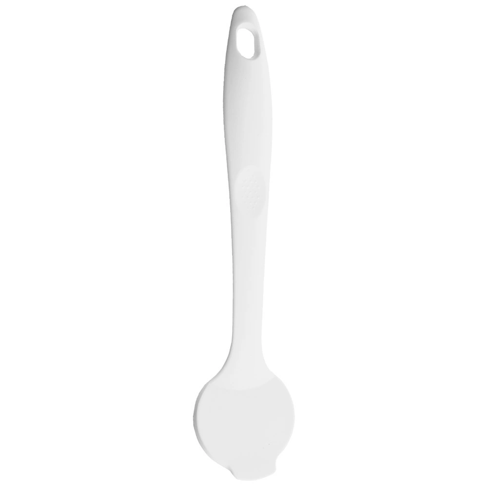 Ergonomiski veidotais rokturis lieliski ieguļ plaukstā, bet speciālā iedobe ar izcilnīšiem pirkstam uzlabo satvēriena drošību. Priekšējais skrāpis palīdz noņemt piedegumus un piekaltušas ēdiena paliekas, nesabojājot virsmas. Pateicoties pakarināšanas atvērumam, birste vienmēr būs pa rokai un virtuve saglabās kārtību.