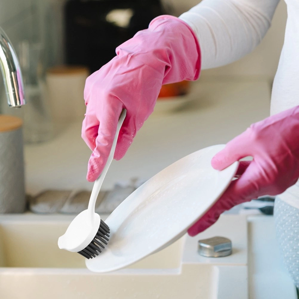 Meklējat higiēnisku un izturīgu trauku birsti, kas tiek galā arī ar piekaltušu netīrumu? Šī silikona birste ar garu rokturi efektīvi tīra šķīvjus, katlus, pannas un virtuves piederumus, kā arī lieliski noder vannasistabā flīzēm un šuvēm. Biezās un elastīgās silikona sariņas ir viegli kopjamas, neuzsūc smakas un ātri izžūst.