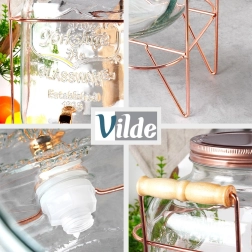 Platā atvere ļauj viegli ievietot citrusaugļu šķēles, garšaugus un ledus kubus. Pateicoties caurspīdīgajam stiklam, vienmēr redzams saturs un daudzums. Dozators nav piemērots karstiem dzērieniem, tas paredzēts aukstu un atdzesētu dzērienu pasniegšanai. Oriģināls zīmola VILDE produkts, ražots saskaņā ar Eiropas standartiem.