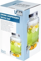 Liela tilpuma stikla dozators ar krāniņu atvieglo dzērienu pasniegšanu jebkurā reizē. Plata kakliņa atvere nodrošina ērtu pildīšanu un tīrīšanu, caurspīdīgais korpuss ļauj kontrolēt saturu, bet metāla vāciņš droši pasargā dzērienu no kukaiņiem. Ideāli piemērots ūdenim ar citrusaugļiem, mājās gatavotai limonādei, sulām, sangrijai vai punšam (ne karstiem dzērieniem).