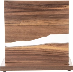 Statīvs River apvieno dabisko akācijas koka skaistumu ar oriģinālu sveķu inkrustāciju, kas atgādina upes tecējumu. Magnētiskā virsma abās pusēs ļauj piestiprināt nažus un metāla virtuves piederumus bez ievietošanas šaurās spraugās – asmeņi vienmēr ir redzami un pa rokai. Stabilā pamatne ar filca kājiņām stingri turas vietā un vienlaikus aizsargā darba virsmu.