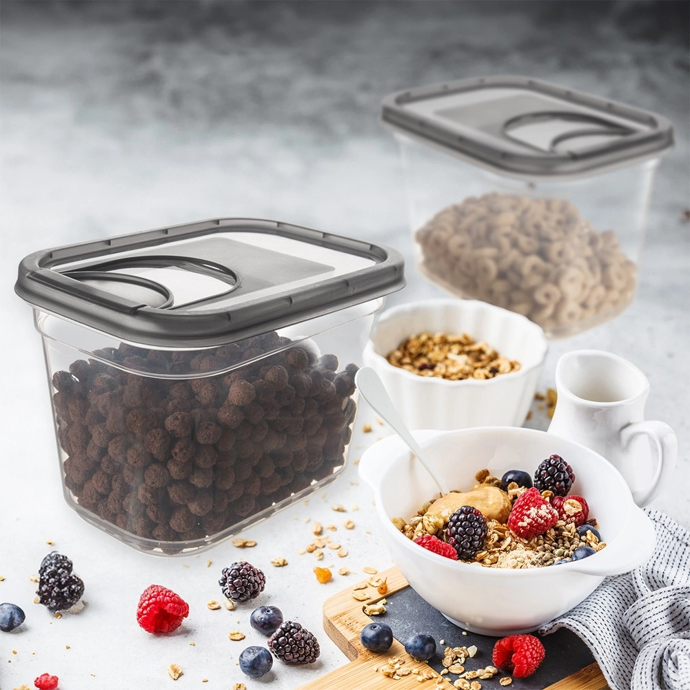 Ieviesiet kārtību pieliekamajā un virtuvē. Šis Grey sērijas konteiners ir ideāls kafijai, pārslām, makaroniem, riekstiem, musli vai kaltētām sēnēm. Pateicoties caurspīdīgajām sienām, krājumi ir viegli pārskatāmi, un dozēšanas vāciņš nodrošina ērtu un tīru izbēršanu bez pilna vāka noņemšanas.