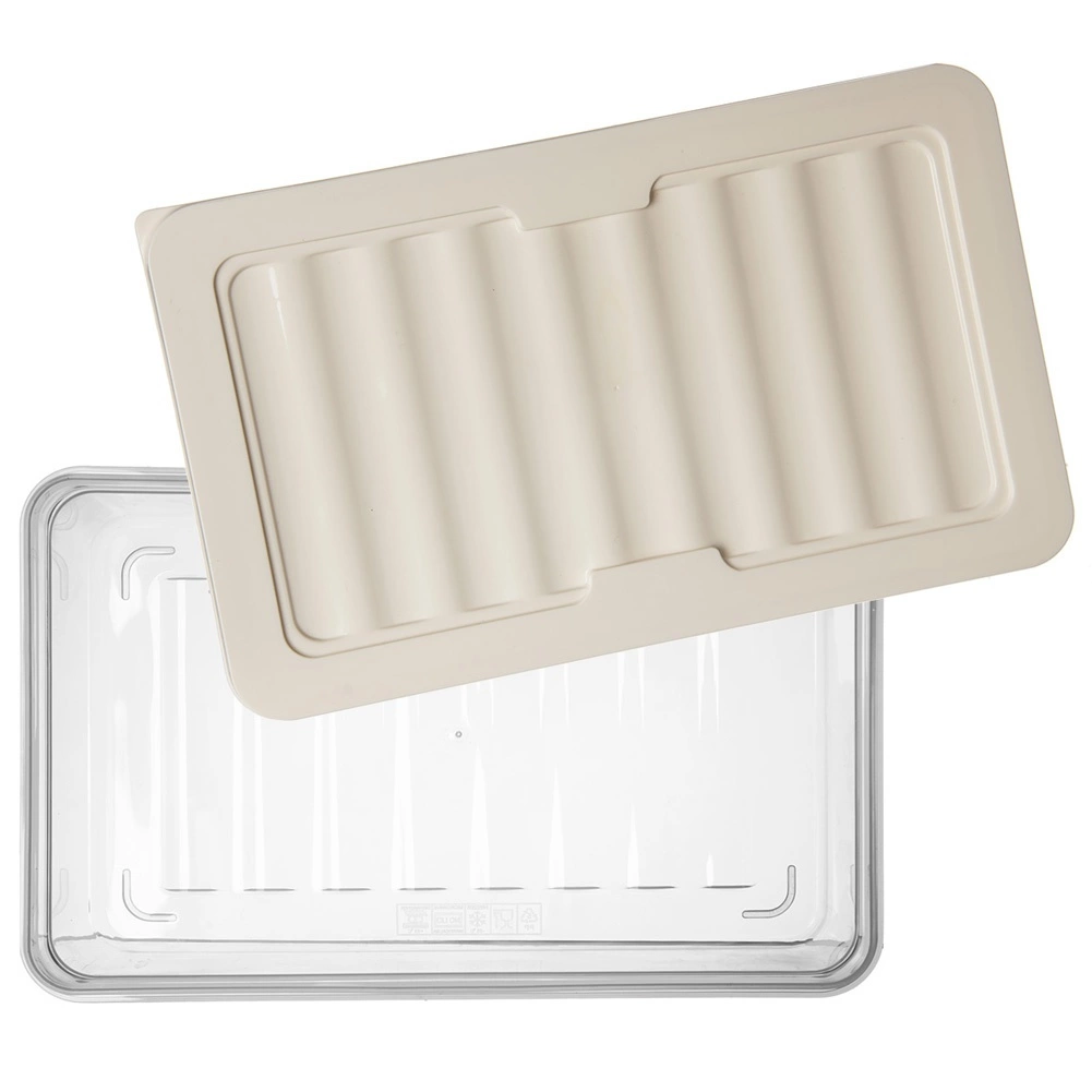 Praktisks zems pārtikas trauks ar tilpumu 1 litrs un hermētisku vāku krēmkrāsā. Pateicoties caurspīdīgajam dizainam, saturs vienmēr ir pārskatāms, stapējama forma taupa vietu ledusskapī, bet izturība no -25 °C līdz +95 °C ļauj to izmantot saldētavā, ledusskapī, mikroviļņu krāsnī (bez vāka) un trauku mazgājamā mašīnā. Ideāli piemērots sieriem un gaļas izstrādājumiem, pateicoties rievotajai apakšai labākai gaisa cirkulācijai.