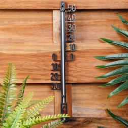 Universāls pie sienas stiprināms termometrs temperatūras mērīšanai mājās un ārā. Piedāvā pārskatāmu skalu no -30 līdz +50 °C, izturīgu plastmasas korpusu melnā krāsā un vienkāršu piekāršanu pie sienas vai žoga. Ideāli piemērots balkonam, terasei un dārzam, kā arī interjeram.