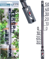 Praktiskais un stilīgais VILDE termometrs precīzi mēra apkārtējā gaisa temperatūru iekštelpās un ārā. Pateicoties lieliem cipariem un kontrastējošai skalai, tas ir viegli salasāms pat no lielāka attāluma. Elegants melns dizains lieliski izskatās uz mājas sienas, žoga, balkona vai priekšnamā.