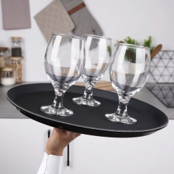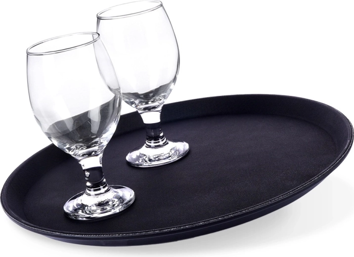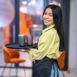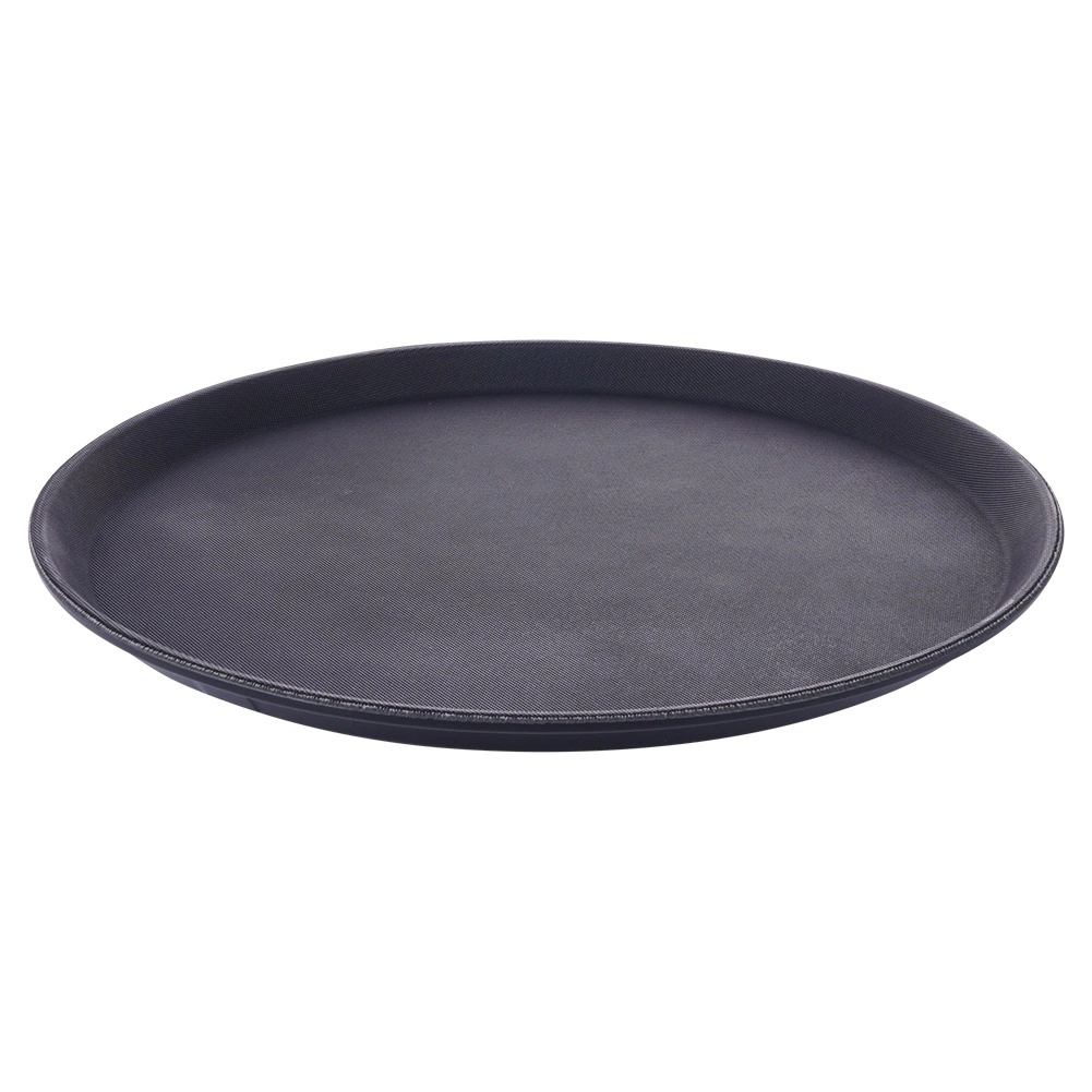 Apaļā melnā paplāte ir uzticams palīgs servēšanai kafejnīcās, restorānos un mājās. Pateicoties neslīdošajam pārklājumam, glāzes un šķīvji paliek stingri savā vietā pat straujāk pārvietojoties, savukārt paaugstinātā mala novērš priekšmetu noslīdēšanu.
