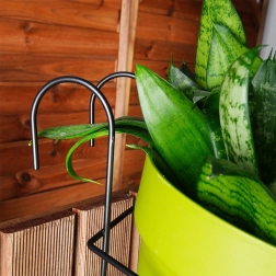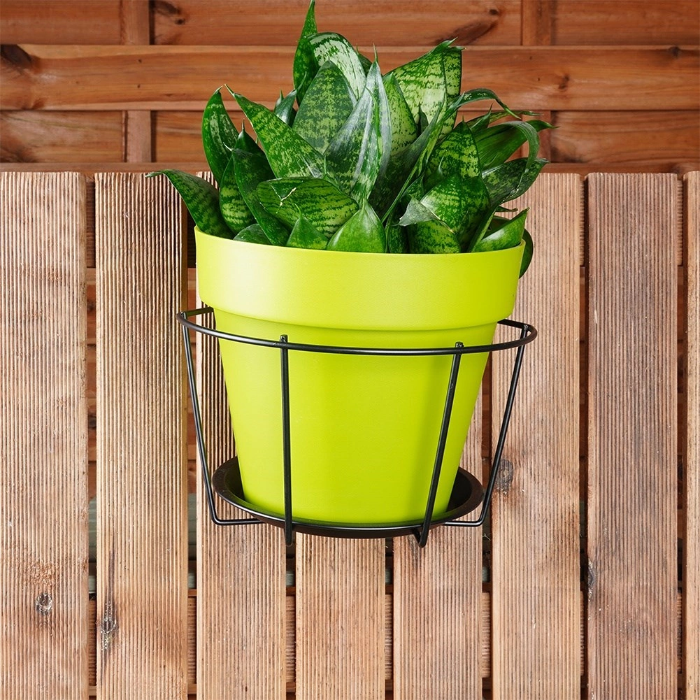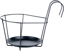 Šis metāla puķupoda turētājs ir ideāla izvēle ikvienam, kas vēlas efektīvi izmantot vietu uz balkona vai terases. Pateicoties divkāršajiem āķiem, to vienkārši uzkars uz margas ar biezumu līdz 5 cm, bez nepieciešamības pēc instrumentiem. Atvērtā stiepļu konstrukcija nodrošina labu gaisa cirkulāciju ap puķupodu un vienlaikus izskatās eleganti.