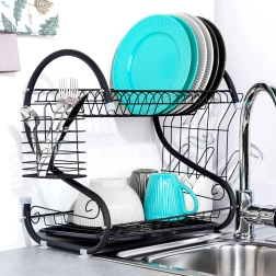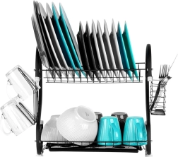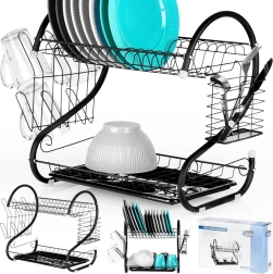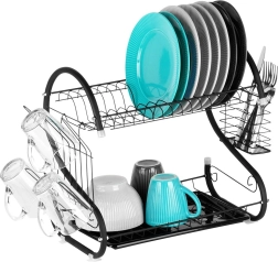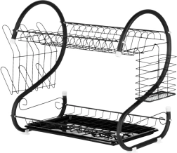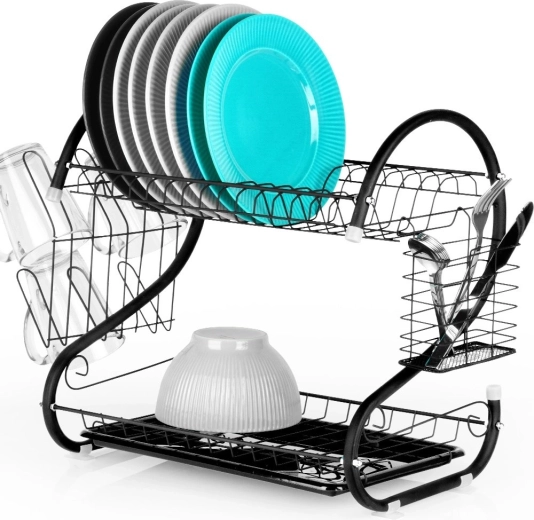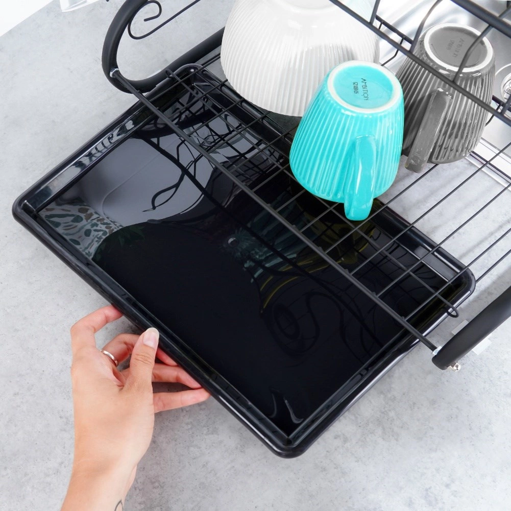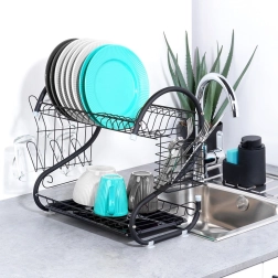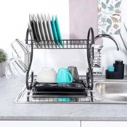Kompakts, bet īpaši ietilpīgs divstāvu trauku žāvētājs palīdz ātri nožāvēt šķīvjus, bļodas, glāzes un piederumus, vienlaikus pasargājot darba virsmu no ūdens pilieniem. Konstrukcija no izturīga metāla matētā melnā krāsā izskatās eleganti un lieliski sader gan ar modernām, gan klasiskām virtuvēm.