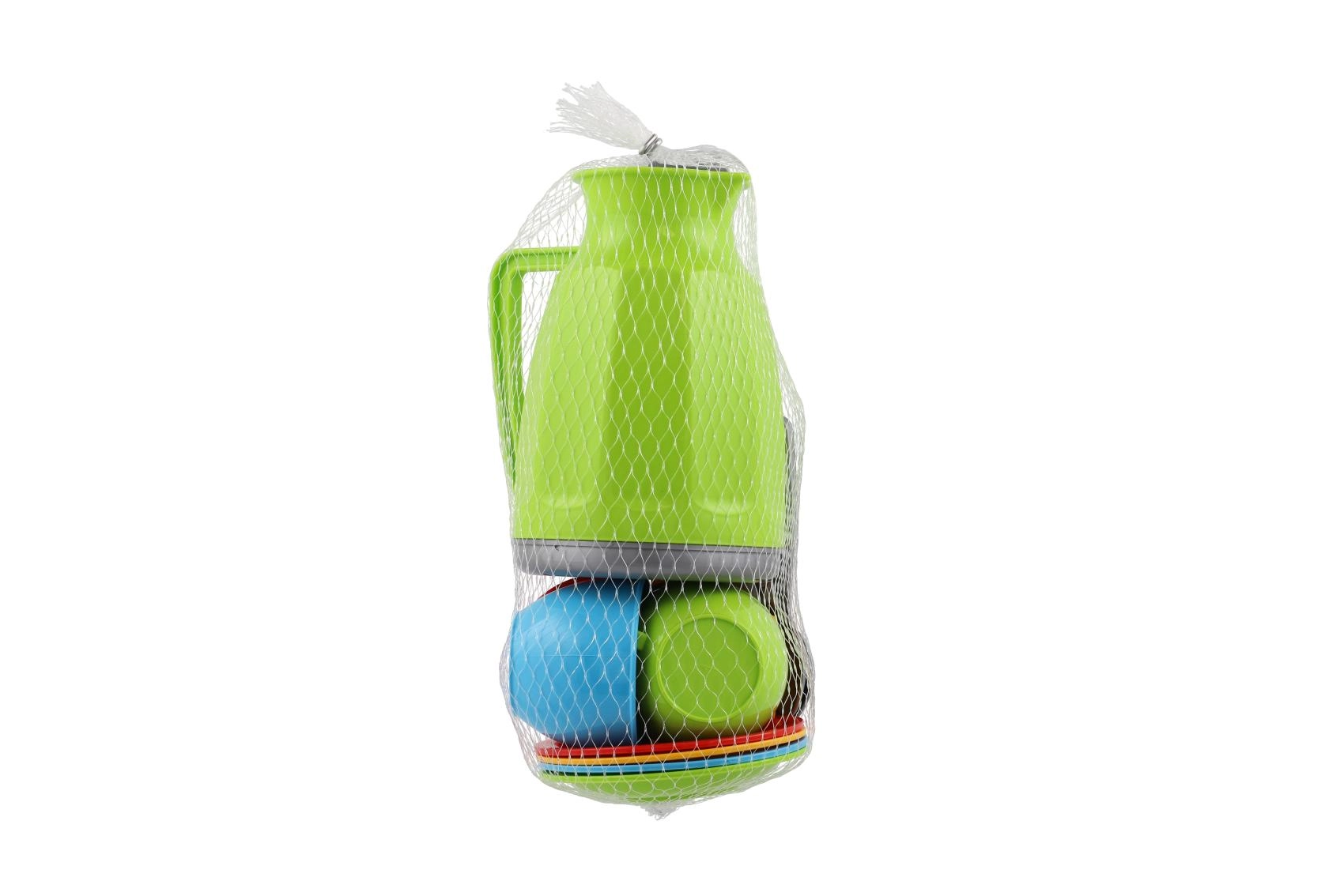 Mīlīgs bērnu tējas serviss no vieglas plastmasas sagādā daudz jautrības mazajām un mazajiem saimniekiem. Komplektā kopā 13 detaļas, tostarp tējkanna, tasītes, apakštasītes un karotītes. Ideāli piemērots lomu spēlēm, iztēles attīstībai un kopīgai izklaidei. Pateicoties košajām krāsām, komplekts ir pievilcīgs un drošs bērniem jau no 12 mēnešu vecuma. Viegls, krāsains un izturīgs komplekts praktiskā sietiņā ērtai pārnēsāšanai.