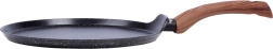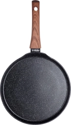 Eleganta 24 cm diametra pankūku panna ar nelīpošu granīta pārklājumu veselīgai cepšanai ar minimālu tauku daudzumu. Pateicoties ātrai un vienmērīgai siltuma sadalei, pagatavosiet perfektas plānas pankūkas, plācenīšus un omletes. Ergonomiska rokturis ar koka dekoru lieliski ieguļ plaukstā un atvieglo lietošanu. Piemērota gāzes, elektrības, stikla keramikas, halogēna un indukcijas plītīm un mazgājama trauku mazgājamajā mašīnā.