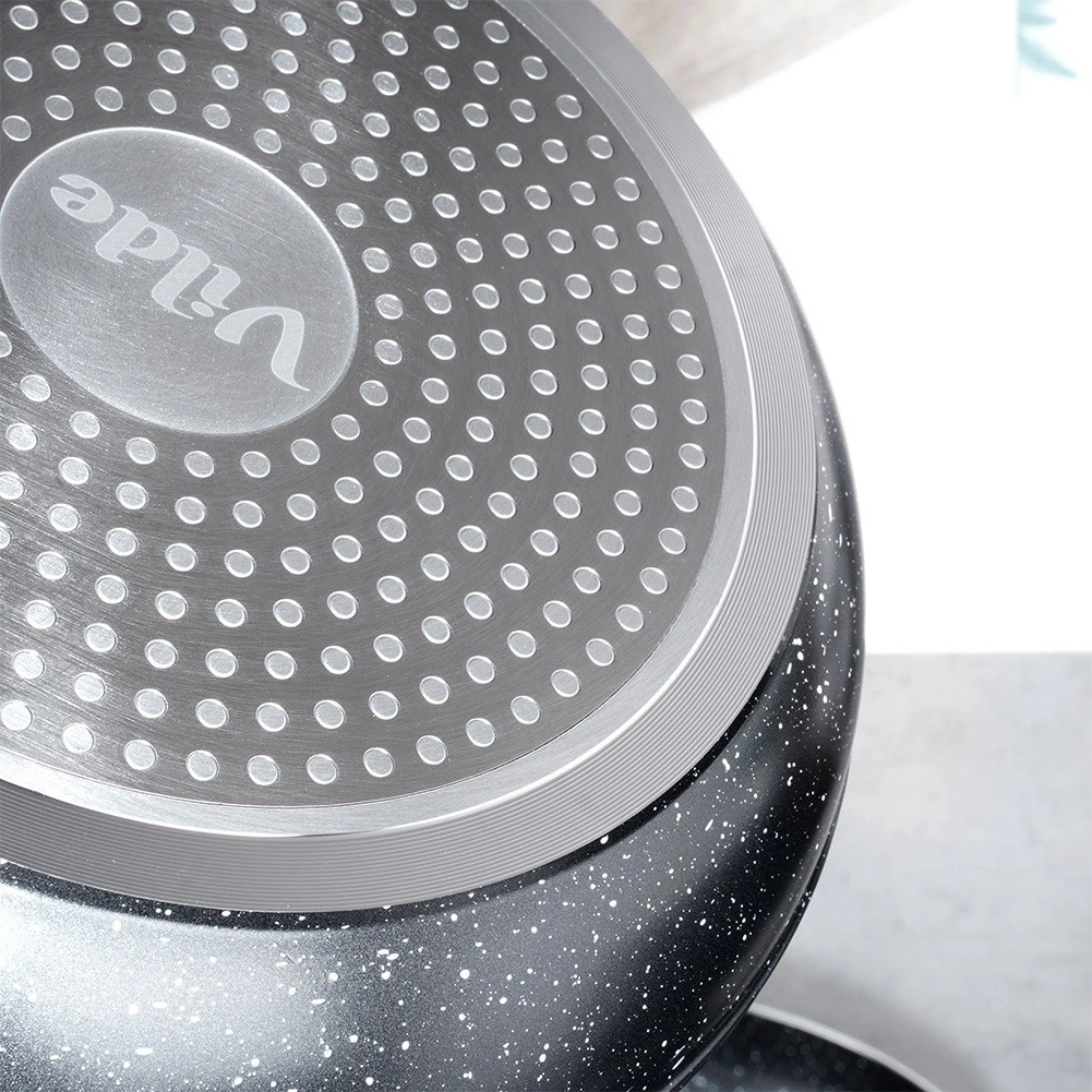 - Ātra un vienmērīga uzsilšana – lietais alumīnijs un daudzslāņu dibens efektīvai siltuma izkliedei.