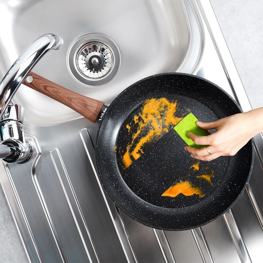 Izturīga, no lietā alumīnija izgatavota panna ar noturīgu nelīpošu granīta pārklājumu izceļas ar lielisku siltumvadītspēju un vienkāršu kopšanu. Moderns melnā un koka salikums iederas jebkurā virtuvē un nodrošina ērtu cepšanu, sautēšanu un sildīšanu.