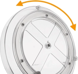 Rotējošā pamatne ļauj ērti un ātri aizsniegt visus novietotos priekšmetus bez pārkrāmēšanas.