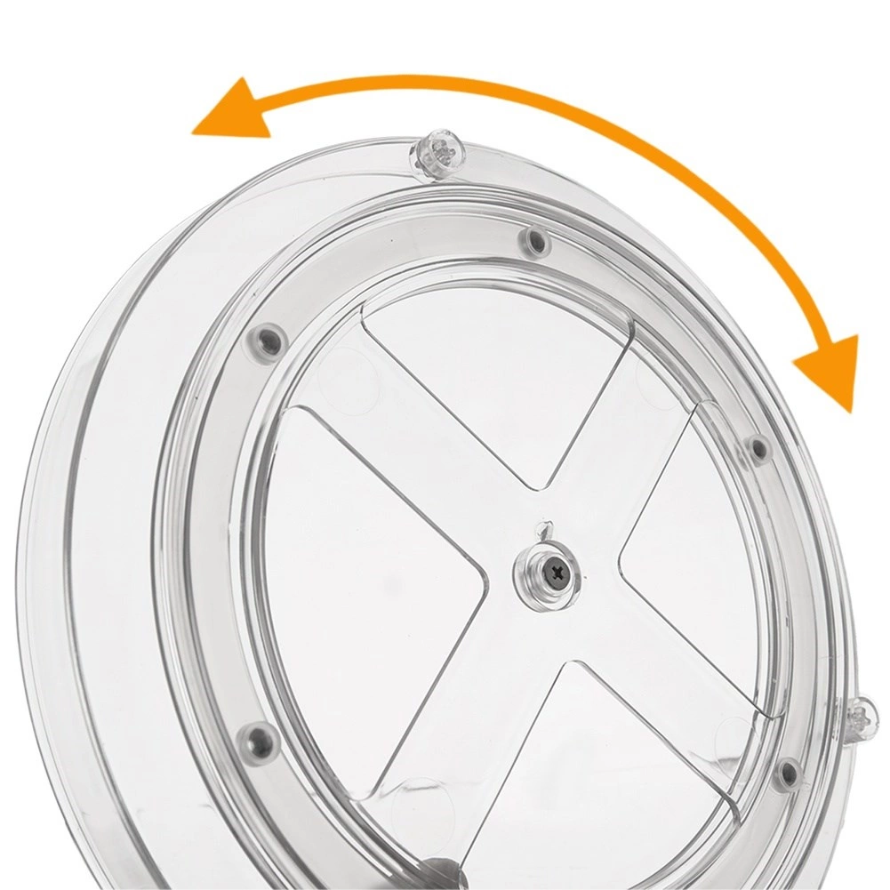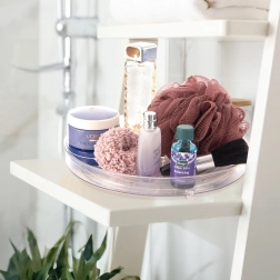 Rotējošais organizators ir gudrs risinājums kārtībai virtuvē, vannasistabā un pieliekamajā. Stabilā apaļā pamatne griežas par 360°, tāpēc ērti tiekat klāt visām lietām bez pārkārtošanas. Diametrs 27 cm un augstums 4,5 cm nodrošina kompaktu, bet pārsteidzoši ietilpīgu glabāšanu.