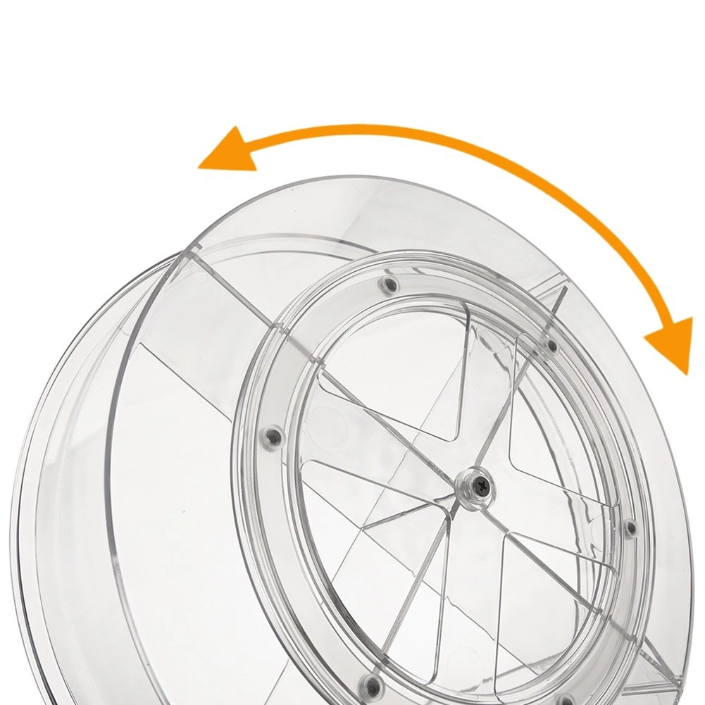 Maksimizējiet plauktu, ledusskapja vai skapīšu vietu. Rotējošais organizators, pateicoties kompaktajiem izmēriem un iedalītajiem nodalījumiem, uztur jūsu lietas pārskatāmi vienuviet. Caurspīdīgais plastmasa nodrošina tūlītēju pārskatu par saturu un vieglu meklēšanu.