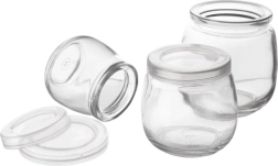 Praktisks 12 stikla burciņu komplekts ar tilpumu 130 ml ir ideāli piemērots jogurtiem, desertiem, ievārījumiem un garšvielām. Izgatavotas no caurspīdīga, izturīga stikla elegantai pasniegšanai un ērtai satura kontrolei. Piemērotas trauku mazgājamai mašīnai, ledusskapim un saldētavai (izturība līdz +80 °C).
